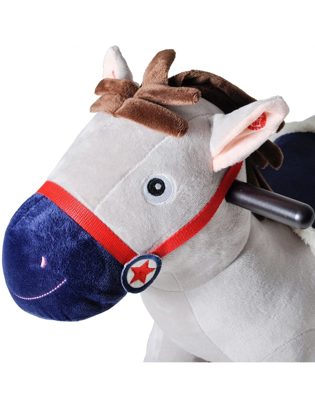 - Fritz este un balansoar util pentru joaca si dezvoltarea abilitatilor motorii ale copilului- Calutul balansoar este confectionat pe o structura rezistenta din lemn, acoperit cu plus moale, foarte confortabil pentru copii- Calutul are sa, capastru si manere laterale de care copilul se poate tine in timp ce se joaca- Prin apasarea urechii, calutul scoate sunete precum caii adevarati- Pentru functionare, produsul necesita 2 baterii tip AA 1,5 V, neincluse in colet- Dimensiunile calutului balansoar: 64 x 26 x 64 cm (lungime x latime x inaltime)- Calutul balansoar este recomandat copiilor cu varsta mai mare de 18 luni si suporta o greutate de maxim 30 kg