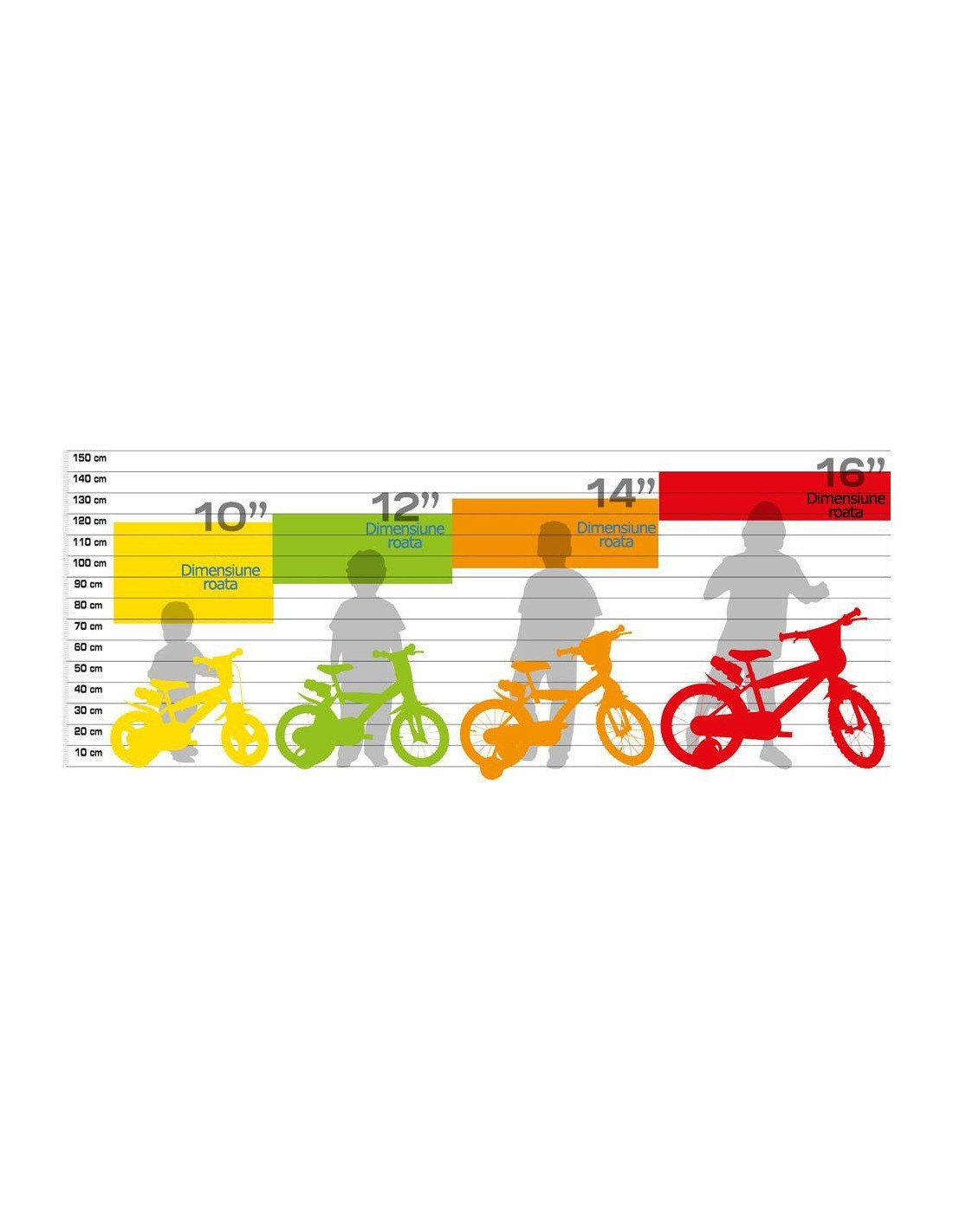 A T E N T I E! Culorile pentru sa, protectie roata, roti ajutatoare si manere ghidon sunt cu titlu informativ, acestea putand varia cu alte nuante. Modelul bicicletei ramane insa neschimbat.