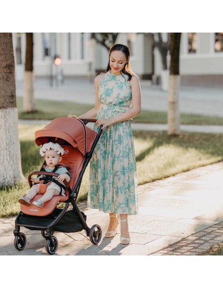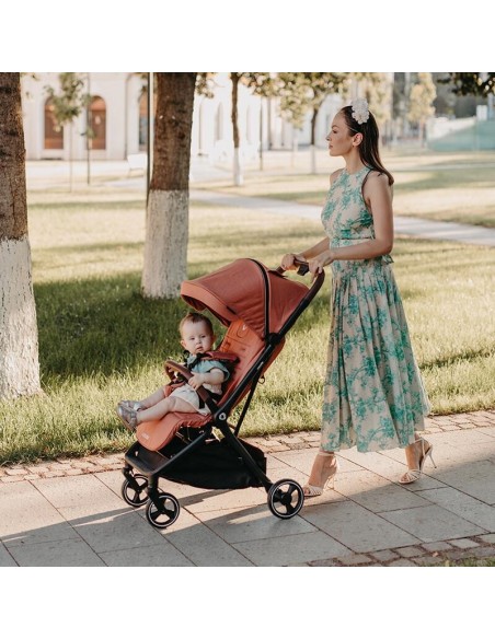 - Dimensiunile prietenoase il fac caruciorul perfect pentru orice plimbare deoarece este suficient de compact ca sa incapa peste tot, dar si destul de generos pentru a nu-i crea disconfort celui mic. Mai mult, faptul ca se pliaza destul de mic il face companionul perfect pentru aventurile din concediu sau city break. Suspensiile cu care au fost dotate toate cele 4 roti il fac de neoprit in explorare, indiferent de terenul pe care este impins.