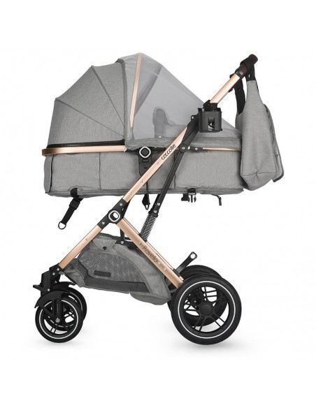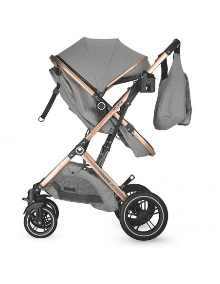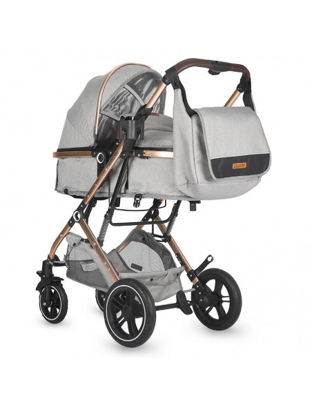 Caruciorul este format dintr-un cadru usor de aluminiu anodizat in culoare aurie, o unitate transformabila care se poate transforma din landou in unitate sport si viceversa in doar cateva miscari si un cosulet auto perfect atat pentru plimbarile cu masina, cat si scurtele escapade pe cadrul caruciorului.