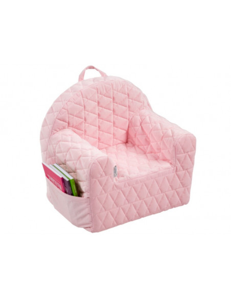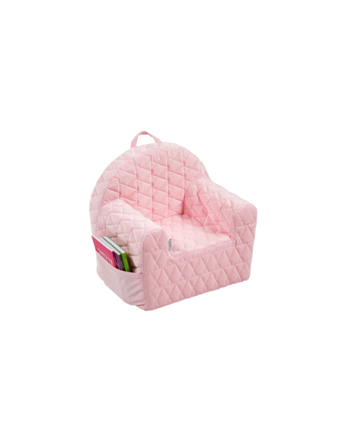 Fotoliul are maner, pentru a fi usor de transportat, si un buzunar pentru depozitat jucarii.