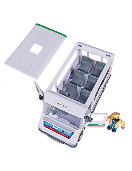 Include un autobuz cu doua benzi de-a lungul vehiculului, o figurina Trevor cu articulatii mobile si accesorii tematice mici: 6 indicatoare rutiere, 2 marcaje ale statiei de autobuz, 3 conuri, palaria soferului