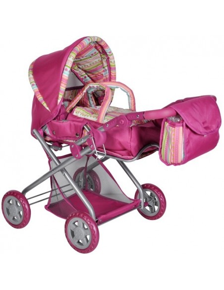 - Caruciorul pentru papusi cu gentuta Kyra este un accesoriu indragit de toate fetele care se joaca cu papusile- Atat spatarul cat si suportul pentru picioare sunt ajustabile, iar caruciorul se poate astfel utiliza si in modul sport - Produsul functioneaza asemenea unui carucior adevarat si se pliaza pentru a economisi spatiu atunci cand nu este folosit- Caruciorul este fabricat din materiale de calitate, rezistente, ideal pentru utilizarea indelungata- Caruciorul pentru papusi este prevazut cu cos de cumparaturi, landou, geanta pentru scutece si copertina de soare- Cosul de cumparaturi, landoul, copertina si gentuta sunt detasabile- Cosul pentru cumparaturi este spatios si are partea de jos intarita pentru a fi mai rezistent- Manerul are o intaritura din burete pentru a asigura confort in utilizare- Caruciorul pentru papusi este prevazut in partea din spate cu plasa transparenta, oferind vizibilitate fetitei atunci cand isi plimba papusa preferata- Geanta pentru scutece are dimensiunea de 20 x 20 x 10 cm (lungime x latime x grosime)- Landoul are dimensiunea de 44 x 19 x 10 cm (lungime x latime x inaltime)- Manerul caruciorului este reglabil pe inaltime – intre 35 cm si 66 cm- Dimensiunile caruciorului: 69 x 38 x 72 cm (lungime x latime x inaltime)- Jucaria este recomandata copiilor cu varsta de peste 3 ani- Nuantele pot diferii usor fata de pozele de prezentare