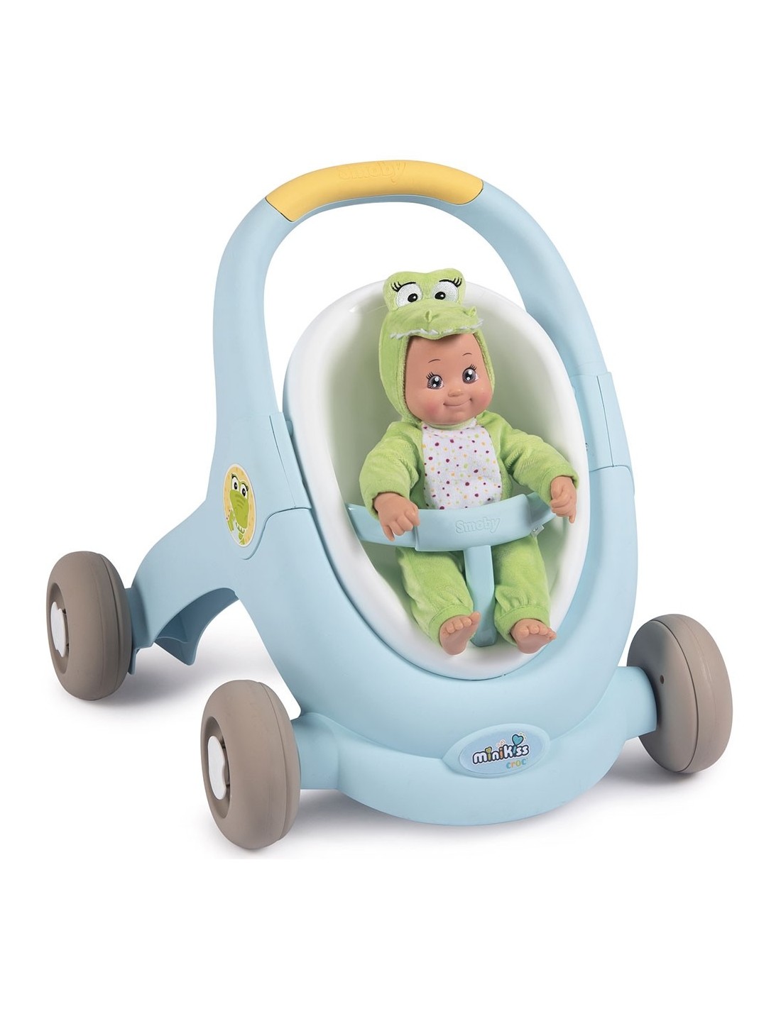 Minikiss Croc este un produs 3 in 1 pe care il poti folosi ca premergator, carucior si scaun