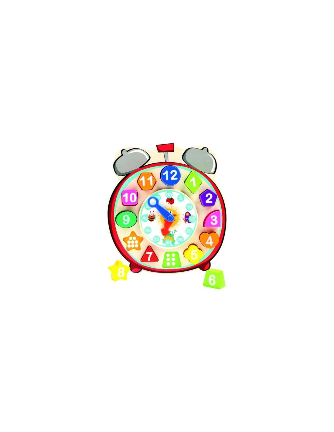 - Jucarie educativa din lemn de calitate sub forma unui ceas viu colorat, cu cadran colorat si numere interschimbabile.