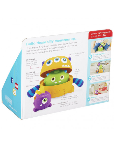 Fiecare monstrulet are un sunet si o textura deosebita pentru ca bebelusul tau sa o descopere, micutii le pot folosi pe rand sau le pot stivui