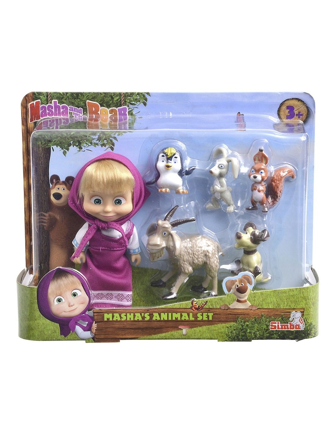Setul include o figurina Masha si 5 animalute