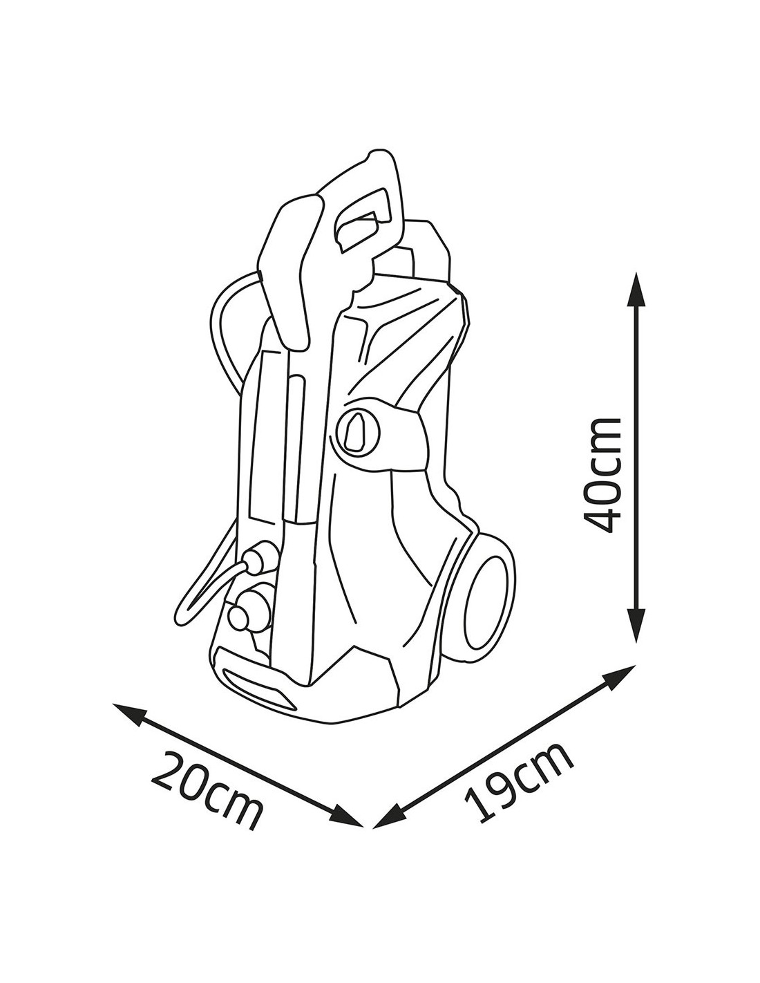 Aceasta replica fidela a aparatului original functioneaza in acelasi mod ca si cel real: trebuie facuta conectarea la furtunul de gradina si se apasa maneta pistolului de inalta presiune pentru a elimina jetul de apa si a putea curata orice suprafata