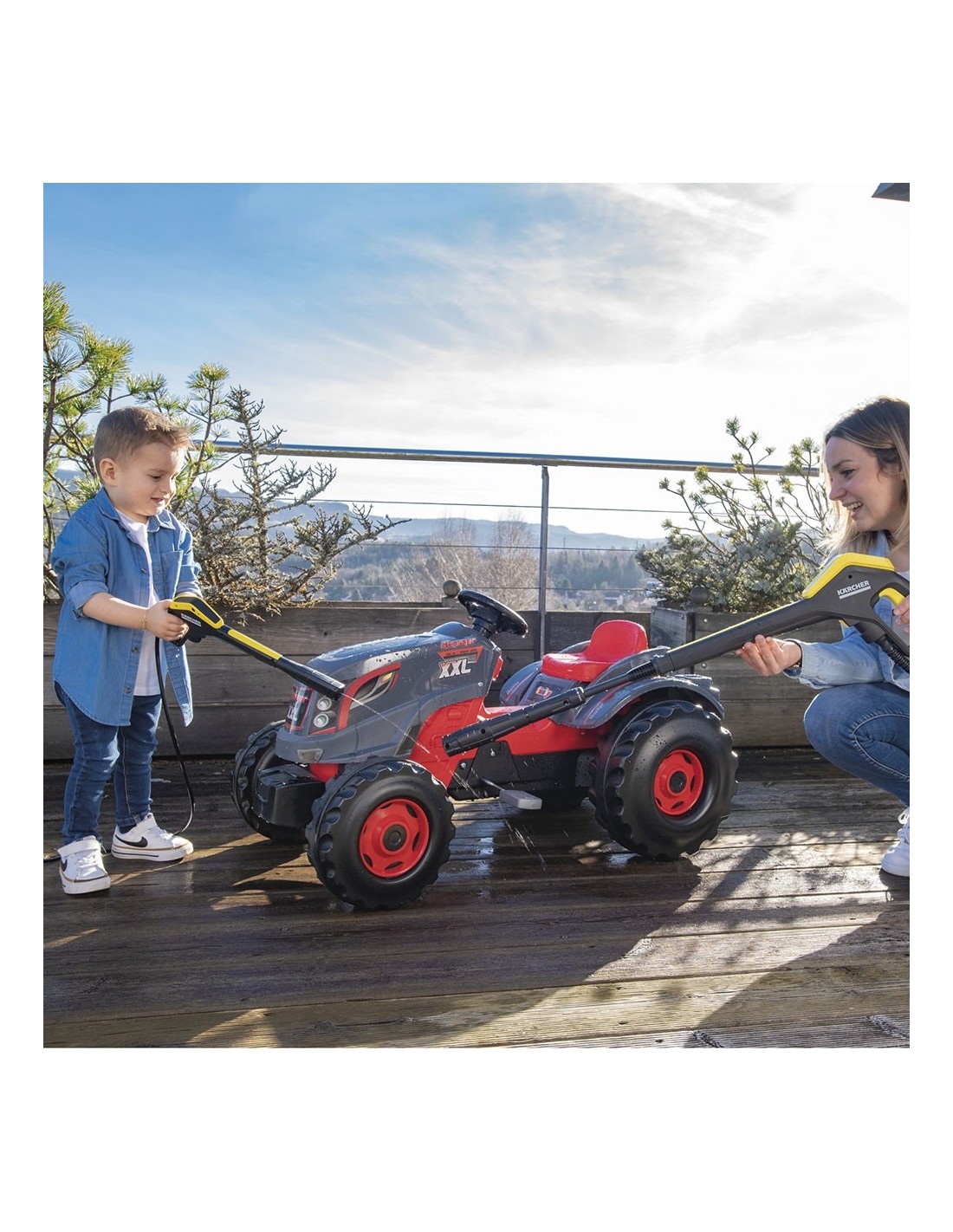 Aparatul de spalat cu presiune Smoby pentru copii dispune de designul original al aparatului de spalat Karcher K4