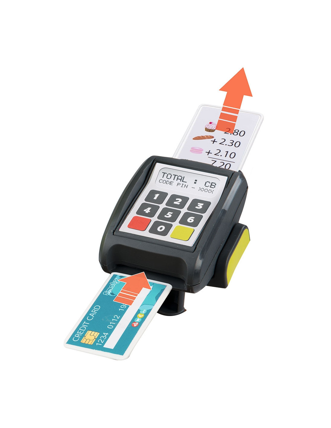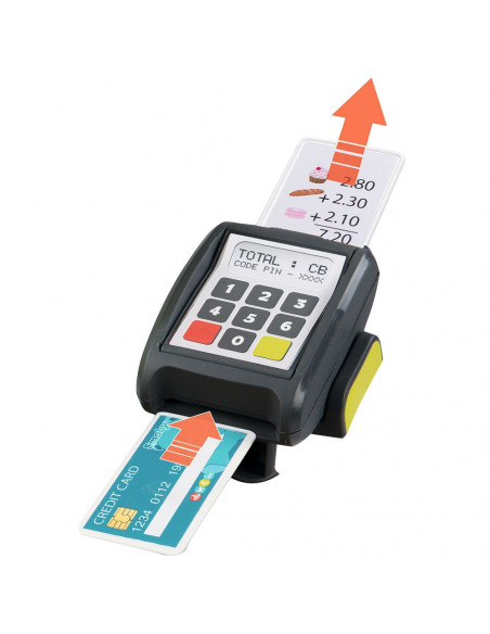 Ca joaca sa para cat mai reala, vanzatorul calculeaza totalul cumparaturilor pe un calculator adevarat iar cumparatorul poate verifica suma pe bonul emis pe terminalul de plata