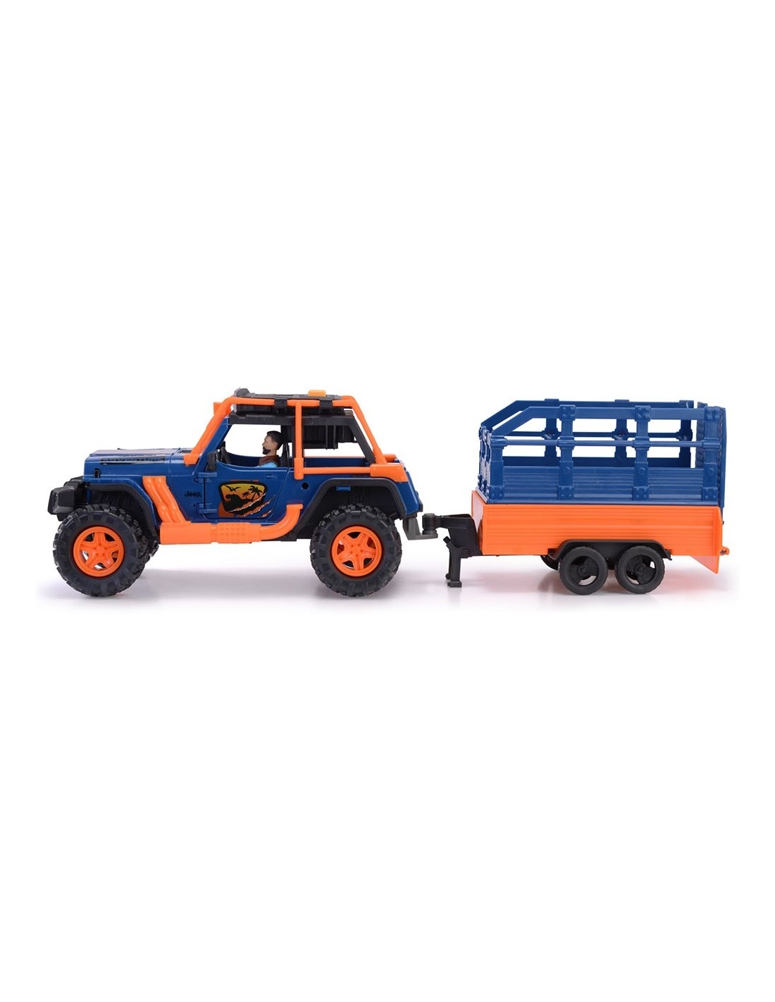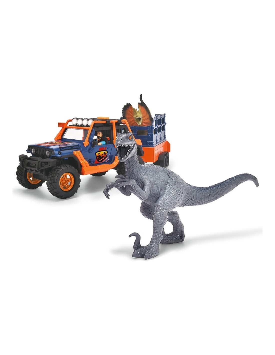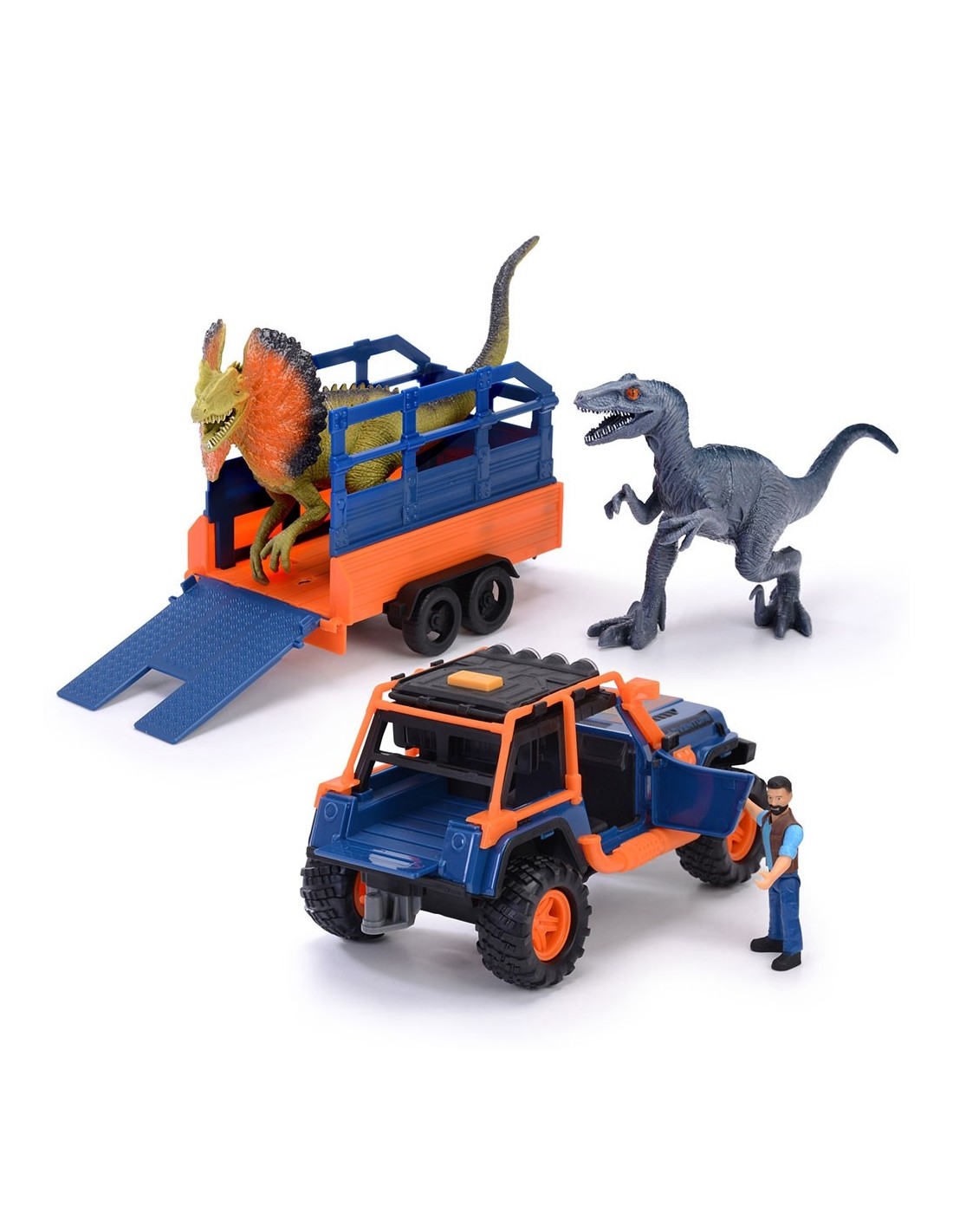Masina are detalii frumoase si o remorca cu cusca pentru a transporta dinozaurii