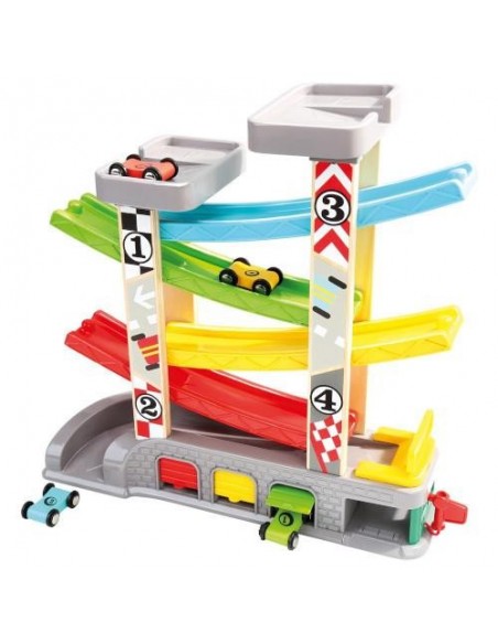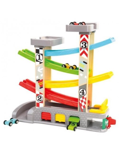 BinoPista de Curse din Lemn cu 4 Masinute