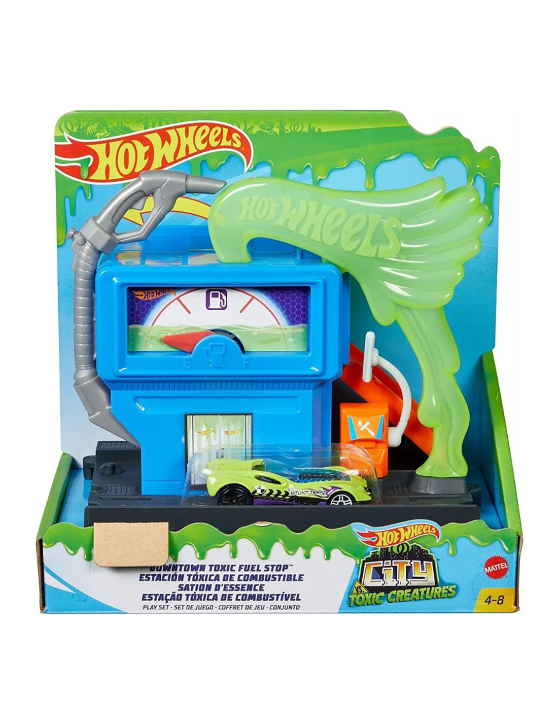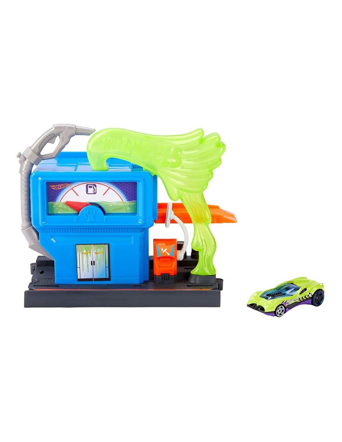 Pista de masini Hot Wheels by Mattel City Downtown Toxic Fluel Stop cu masinuta