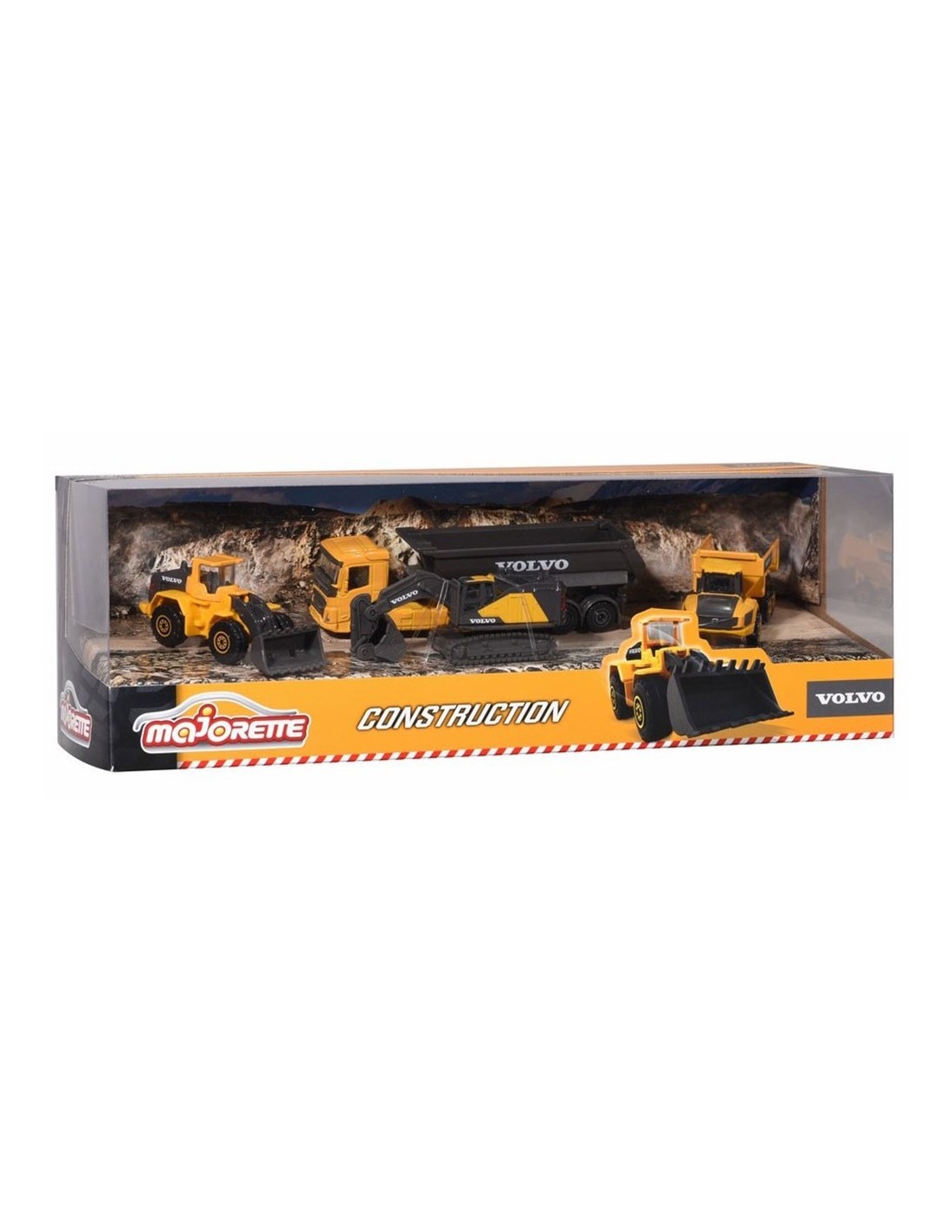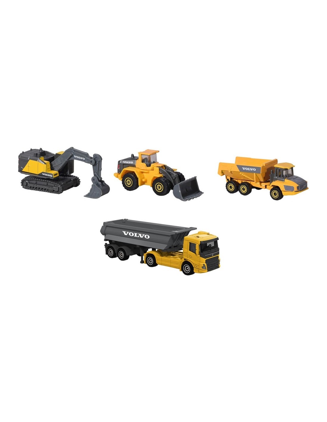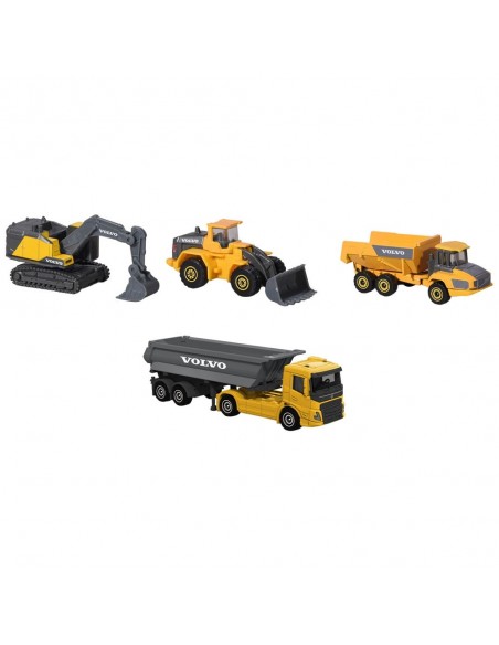 Set Majorette Volvo camion cu remorca, camion basculant, buldozer si excavator