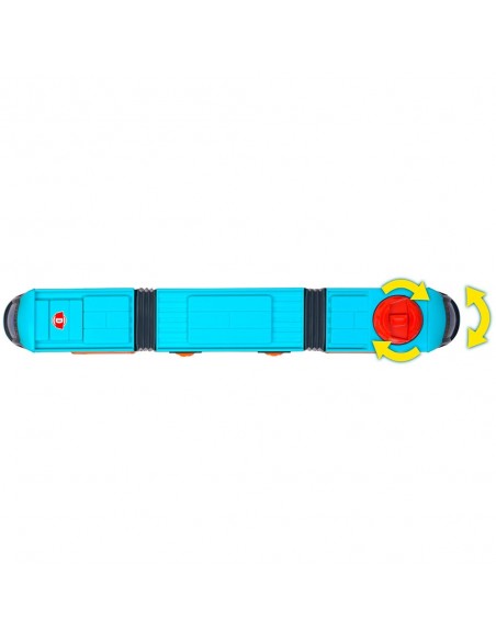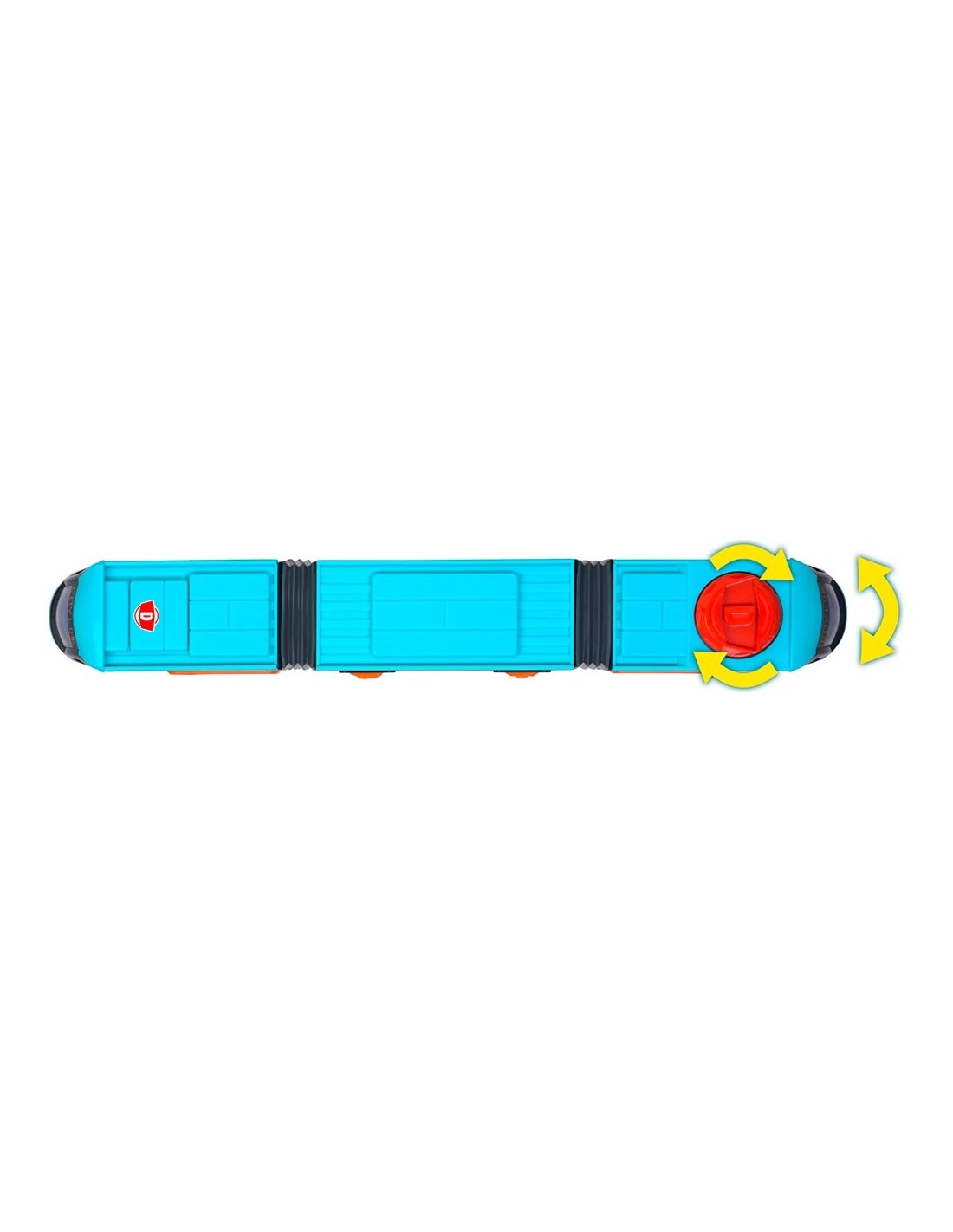 Tramvaiul are un mecanism de deschidere a usilor iar functia de directie a rotilor din fata, poate fi controlata printr-o roata rotativa situata in partea de sus a jucariei