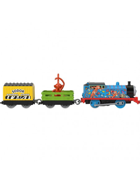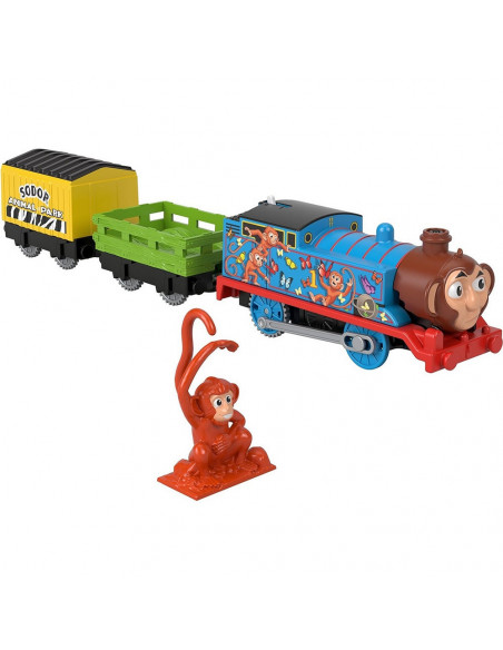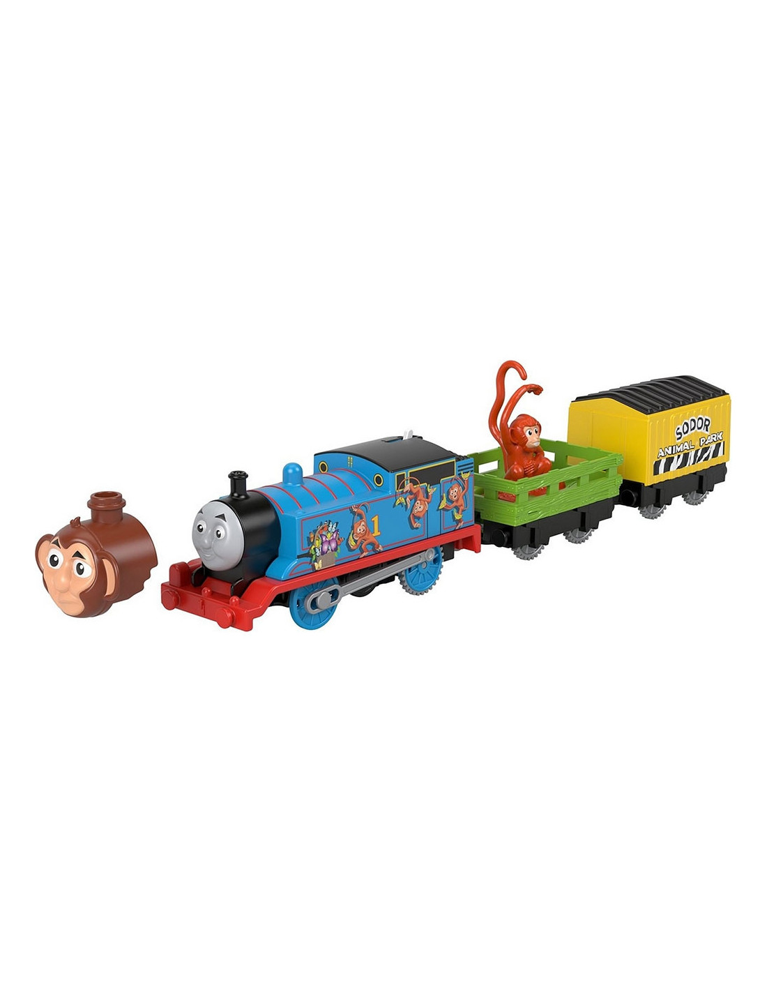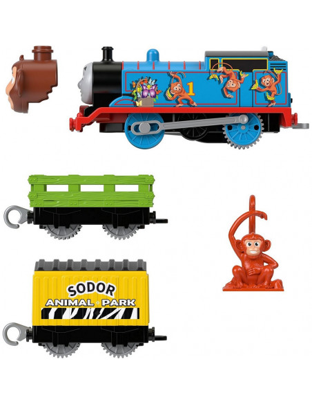 Trenul Thomas este decorat cu desene ale unuor maimute, iar o masca detasabila cu fata acestor animale il va ajuta pe Thomas sa se arunce in lumea salbatica