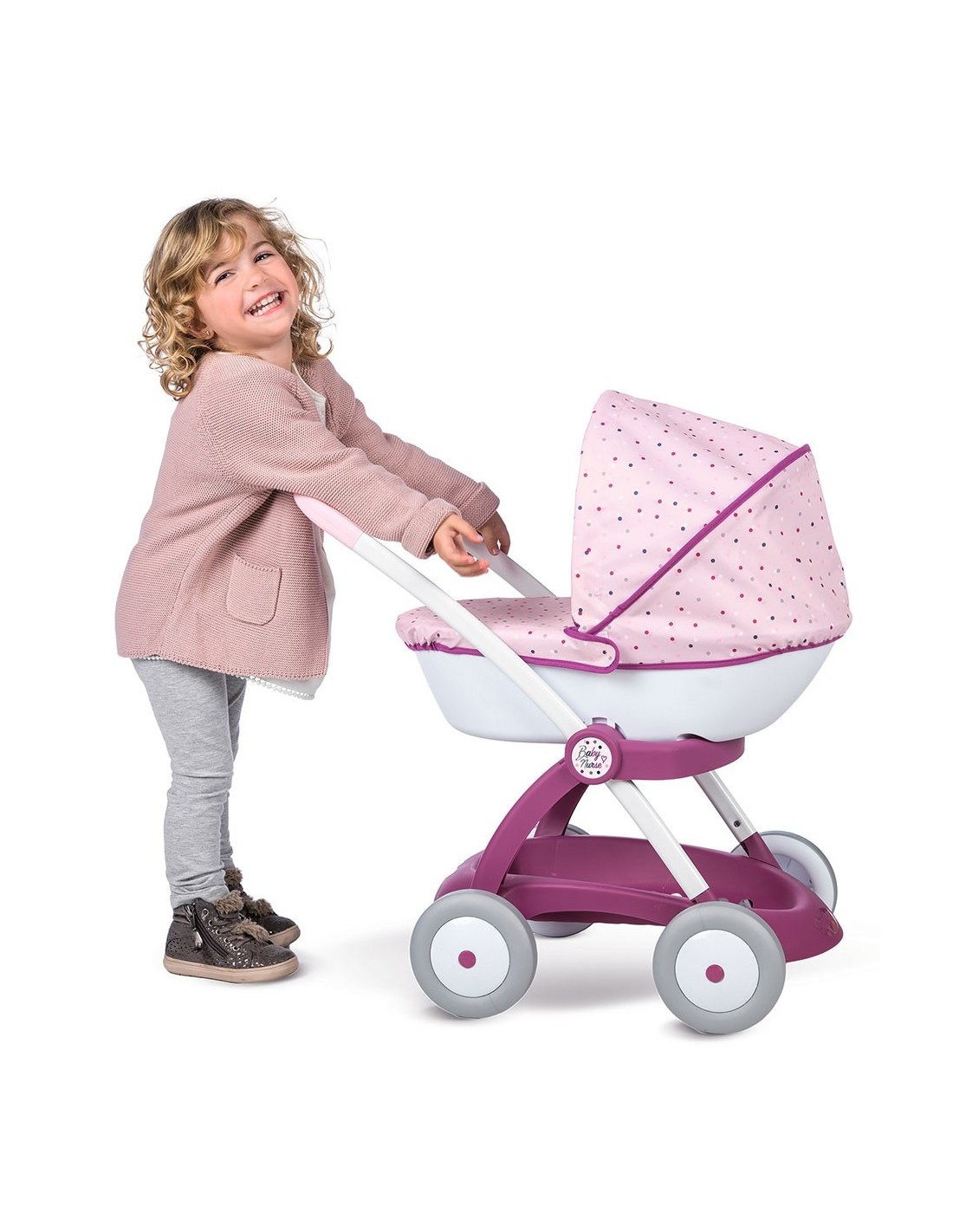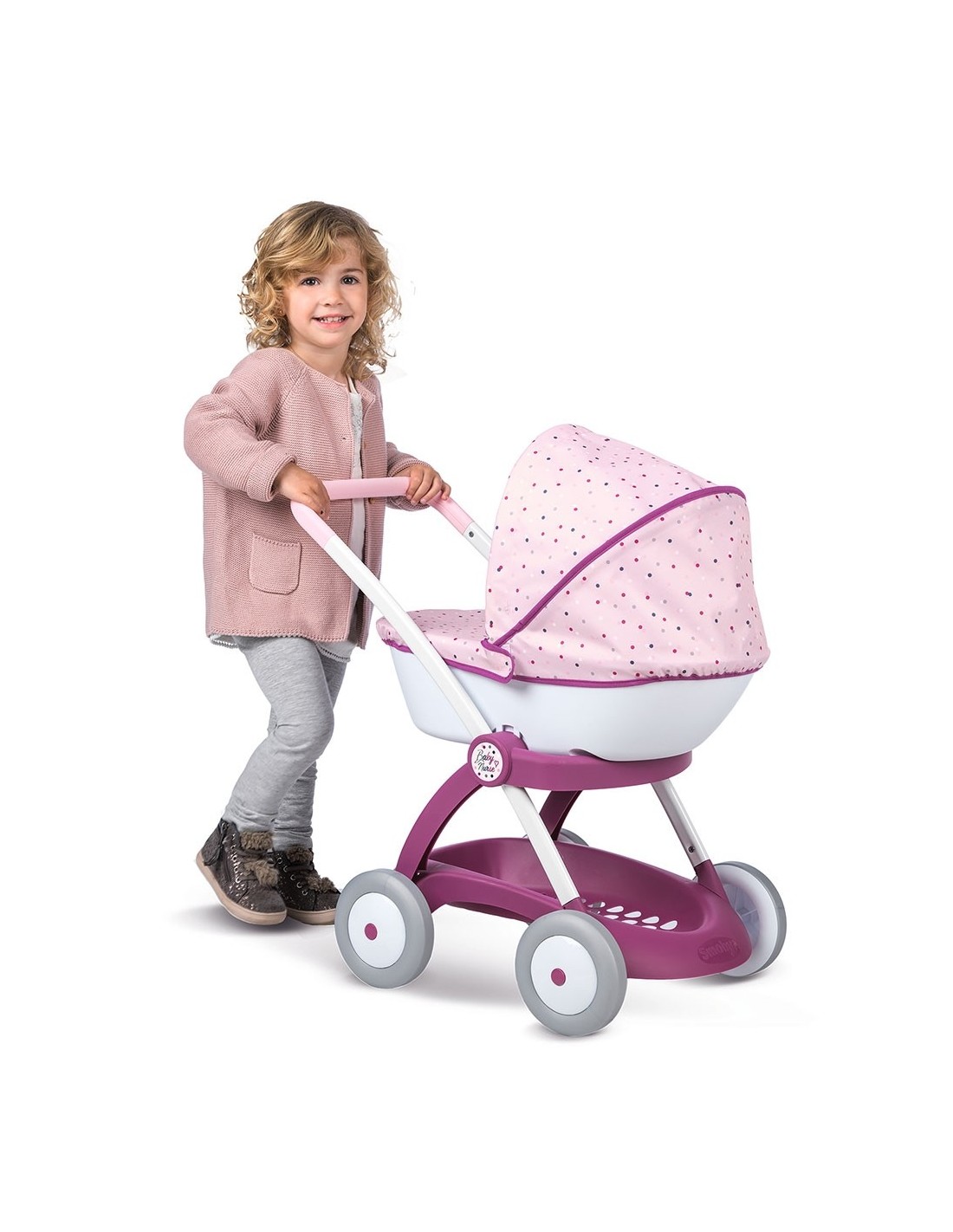 Caruciorul pentru papusi Smoby Baby Nurse Chuli Pop este un carucior stabil si robust recomandat fetitelor de la vrasta de 18 luni