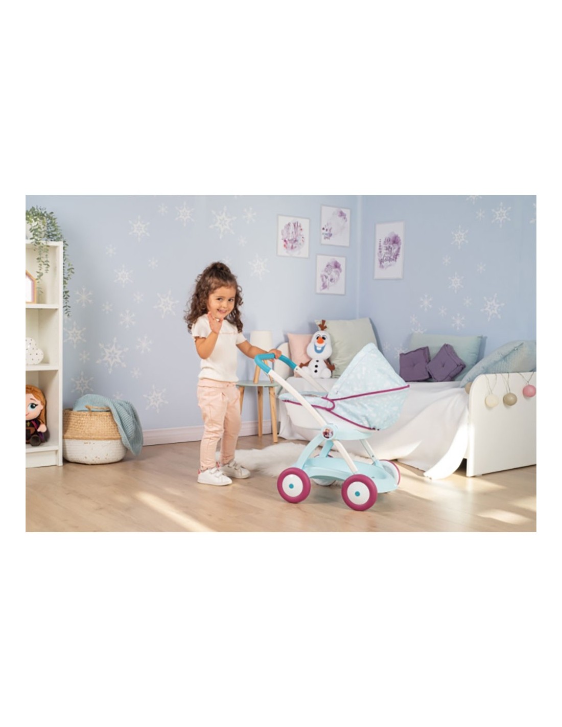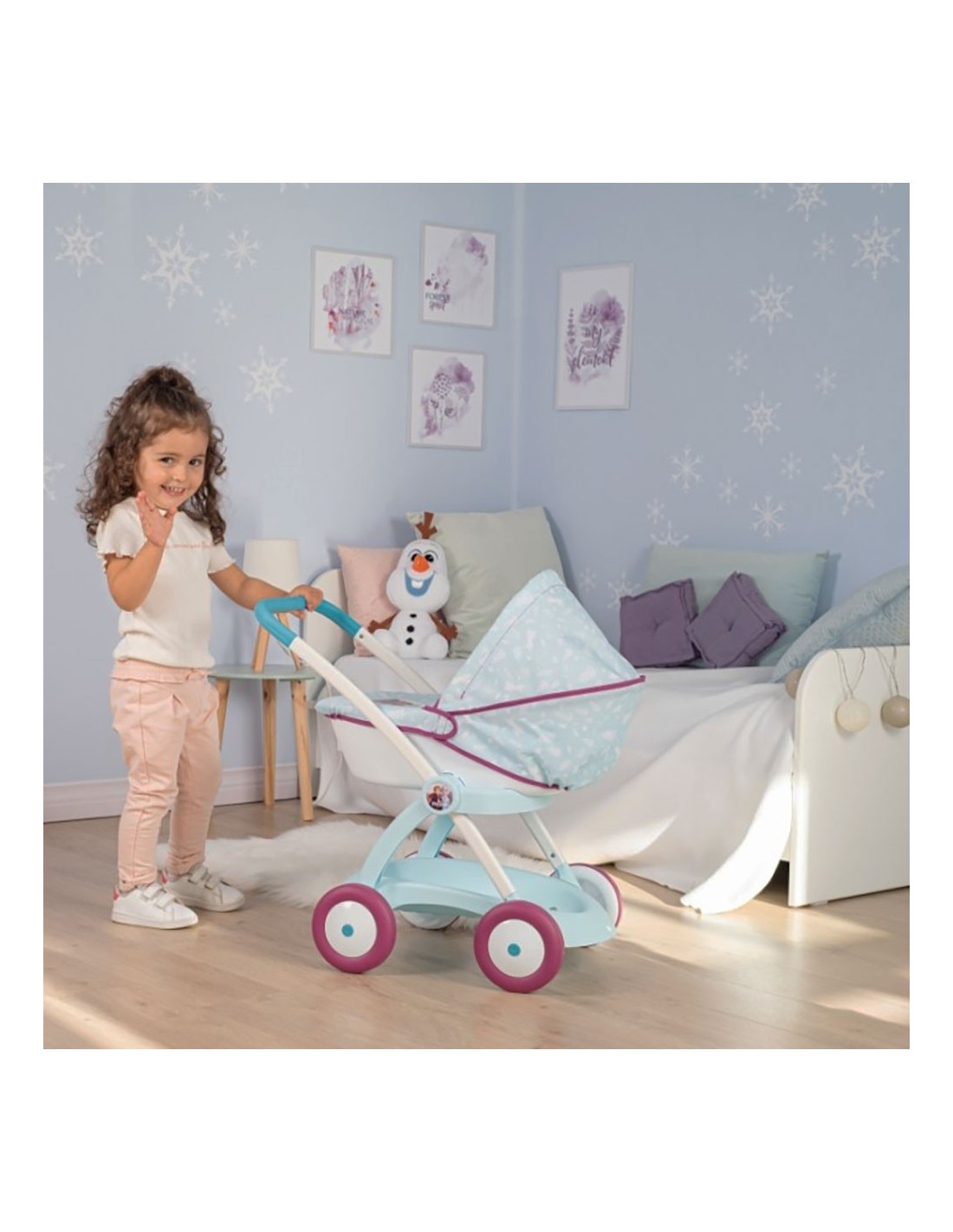 Caruciorul pentru papusi Smoby Frozen este un carucior stabil si robust recomandat fetitelor de la vrasta de 18 luni