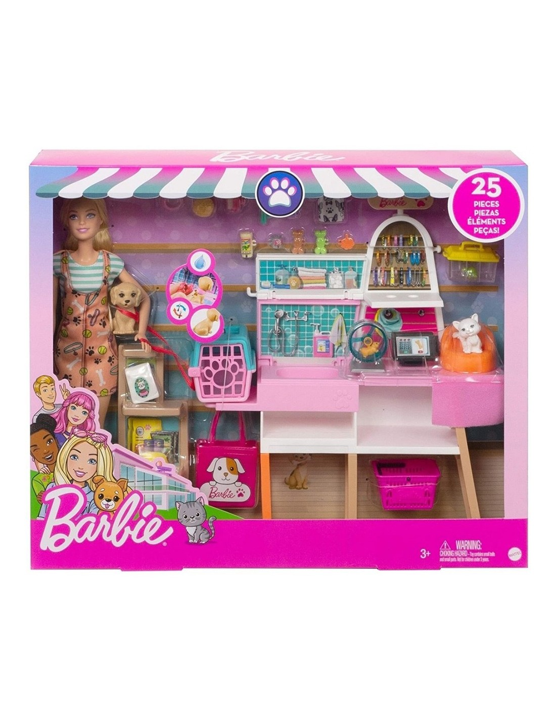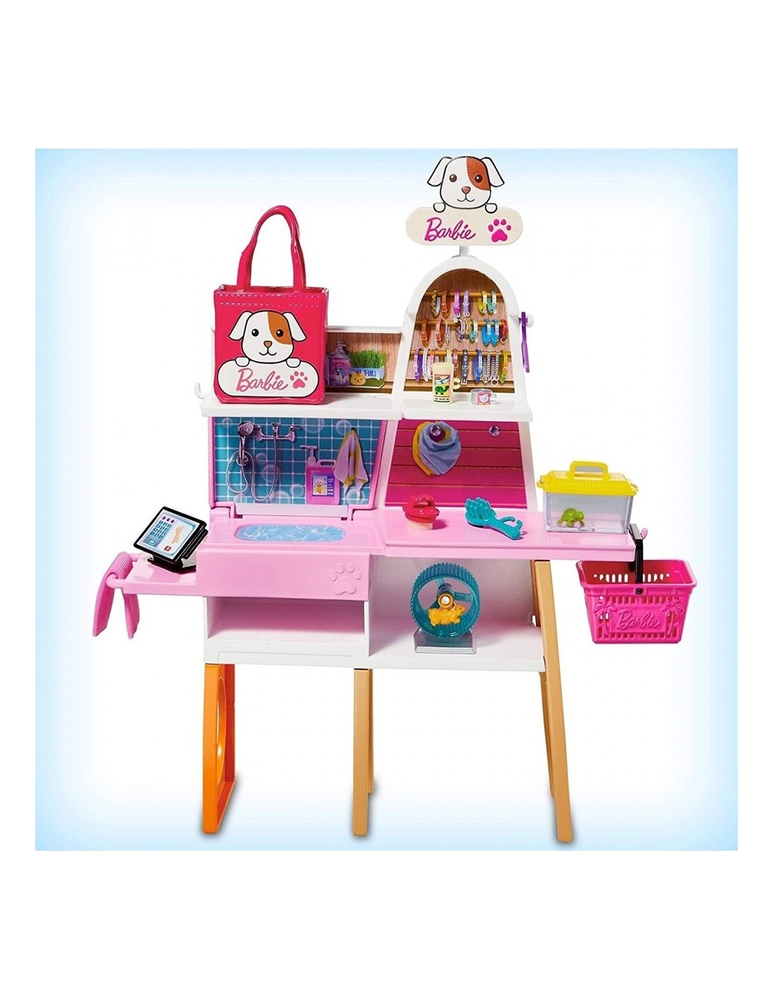 Bun venit in magazinul pentru animale de companie, unde copiii vor gasi tot ce le trebuie pentru a ajuta papusa Barbie sa-si ingrijeasca prietenii animalute