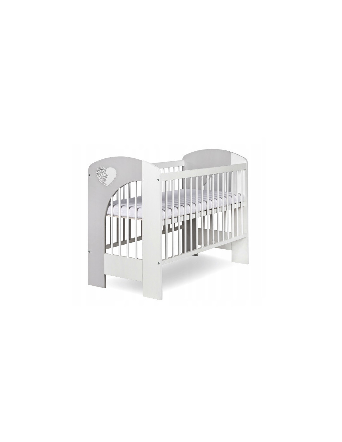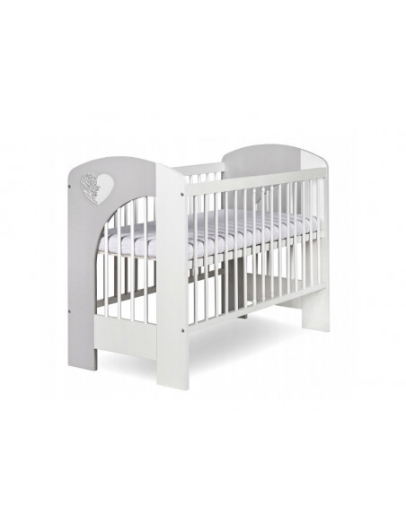 Patutul NEL HEART Alb Gri 120(L) x 60(l) cm are o structura sigura si stabila si este confectionat din MDF si din lemn de pin de cea mai buna calitate.