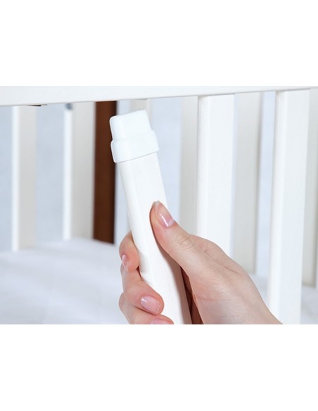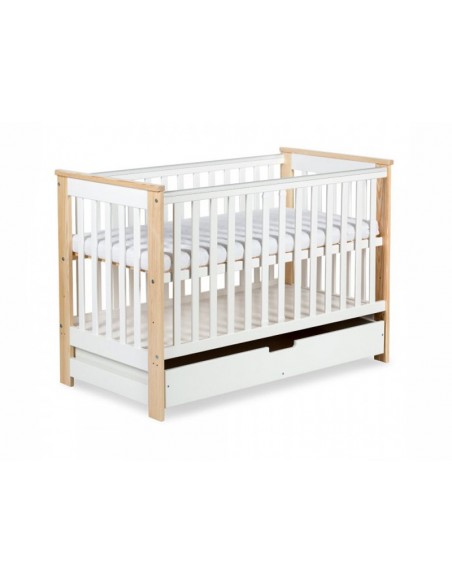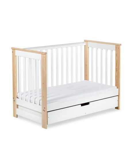 Designul modern si culoarea alb-natur, cu linii simple, dar elegante, va incadra patutul in orice tip de camera si va incanta pe toata lumea. Barele demontabile ii vor permite celui mic sa coboare si sa urce in patut fara sa escaladeze gratiile inalte. Patutul este prevazut cu un sertar incapator pentru accesorii, scutece sau hainute.
