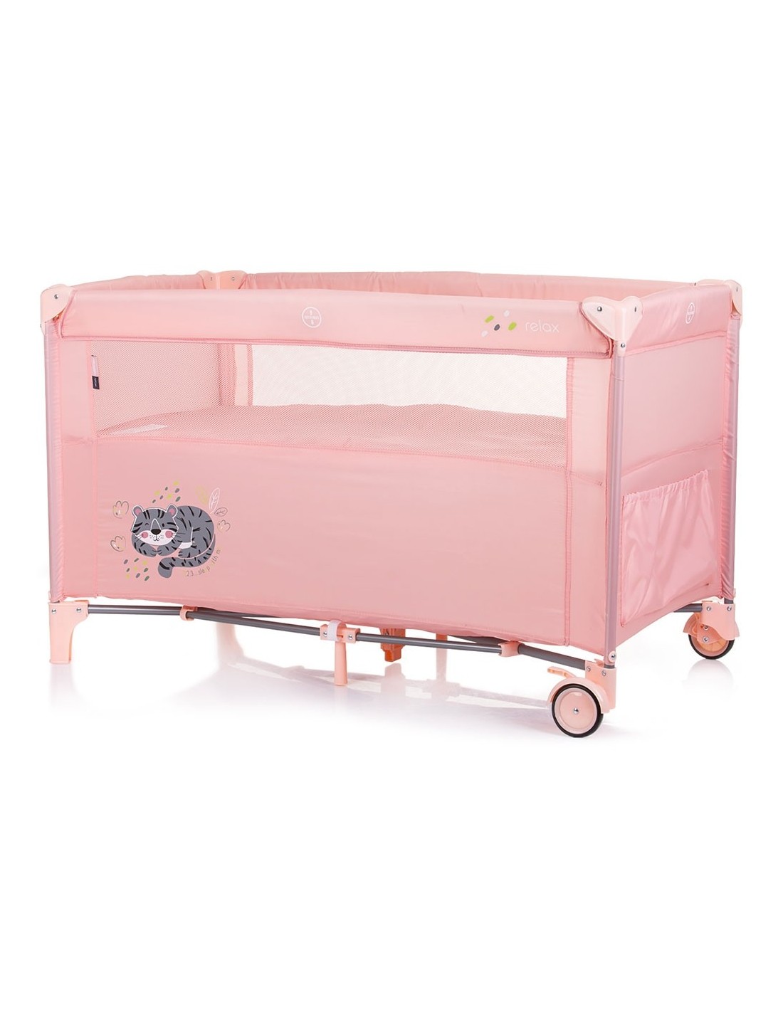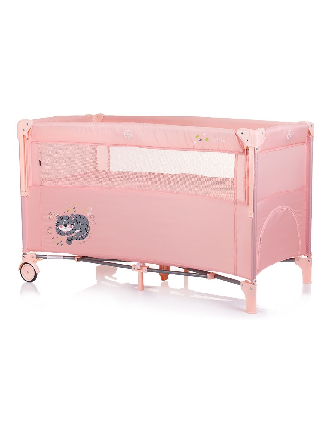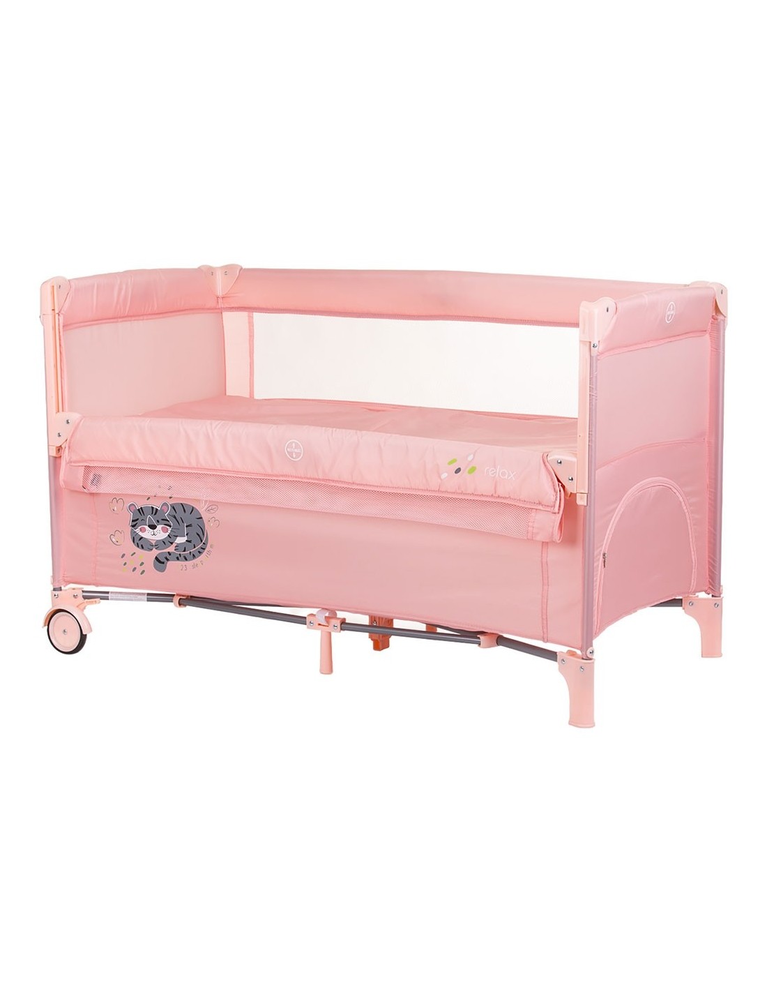 Patut pliabil Chipolino Relax flamingo tiger cu laterala culisanta
