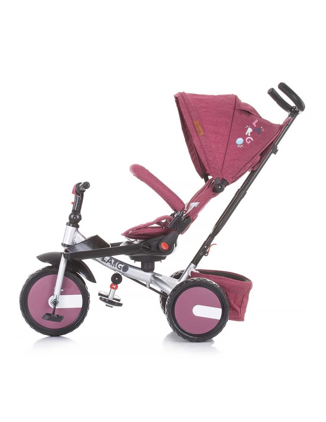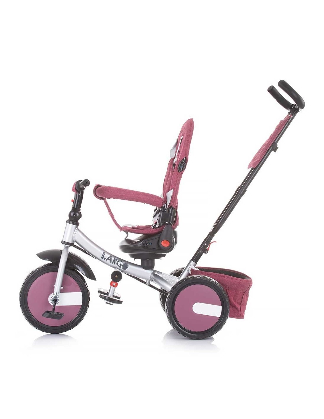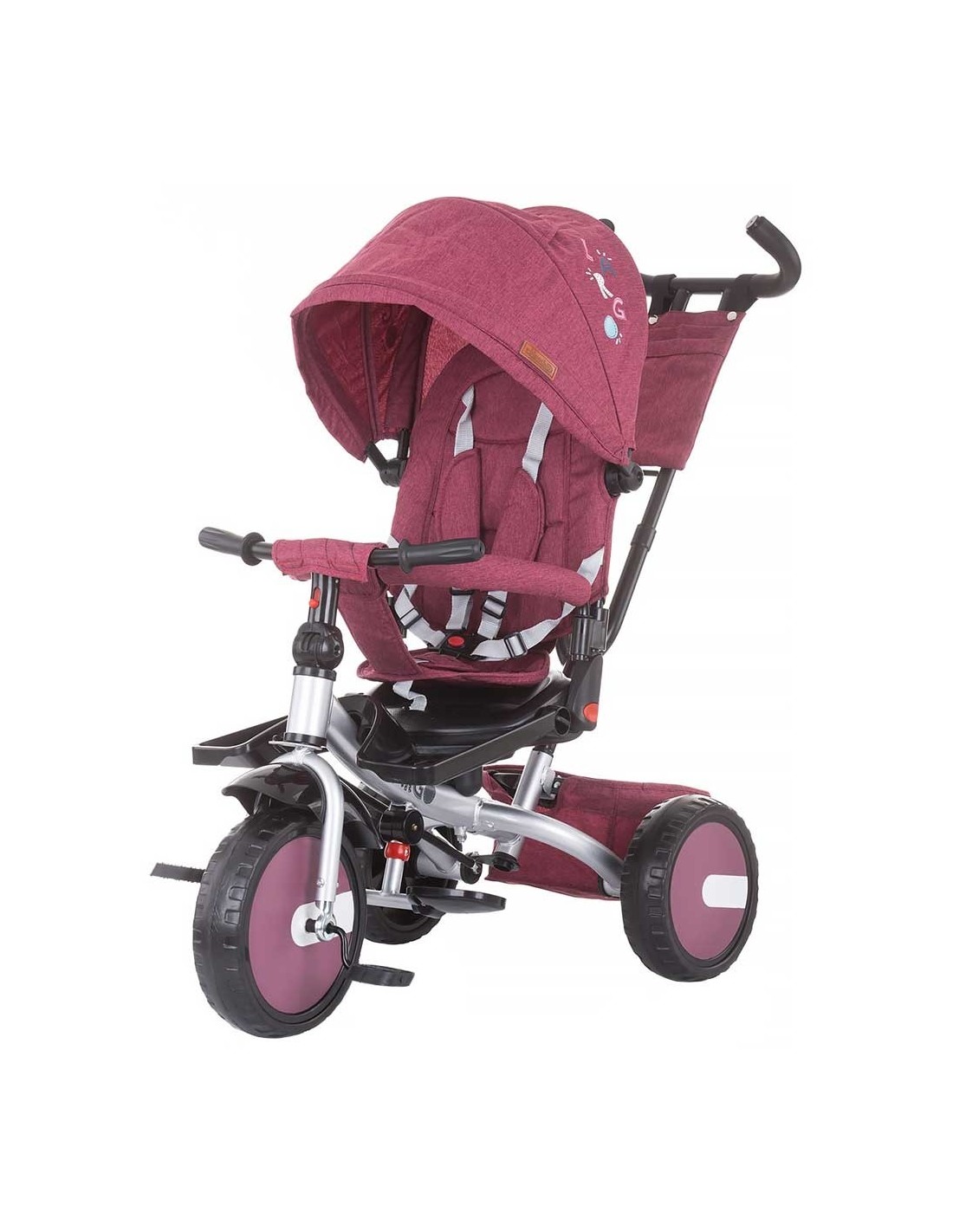 Copertina, manerul de dirijare si bara de siguranta sunt detasabile, transforman tricicleta pentru copii mai mari