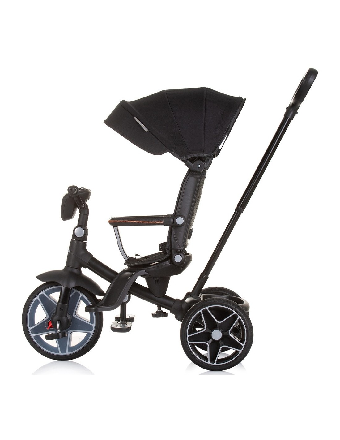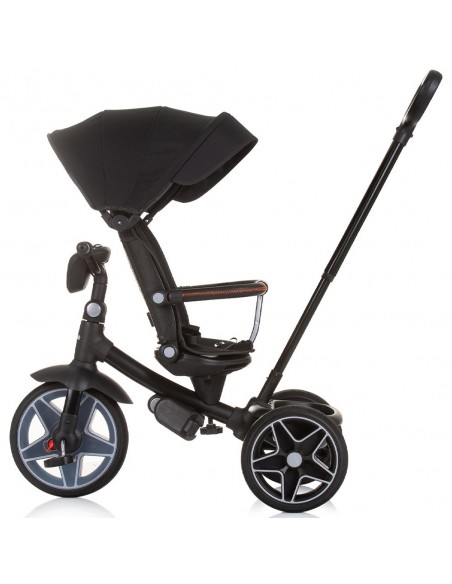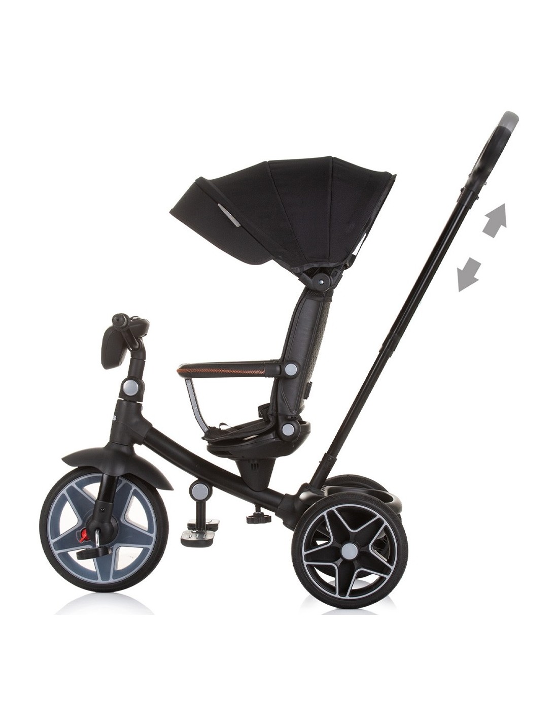 Copertina, manerul de dirijare si bara de protectie sunt detasabile, astfel tricicleta poate fi folosita pentru copii mai inalti