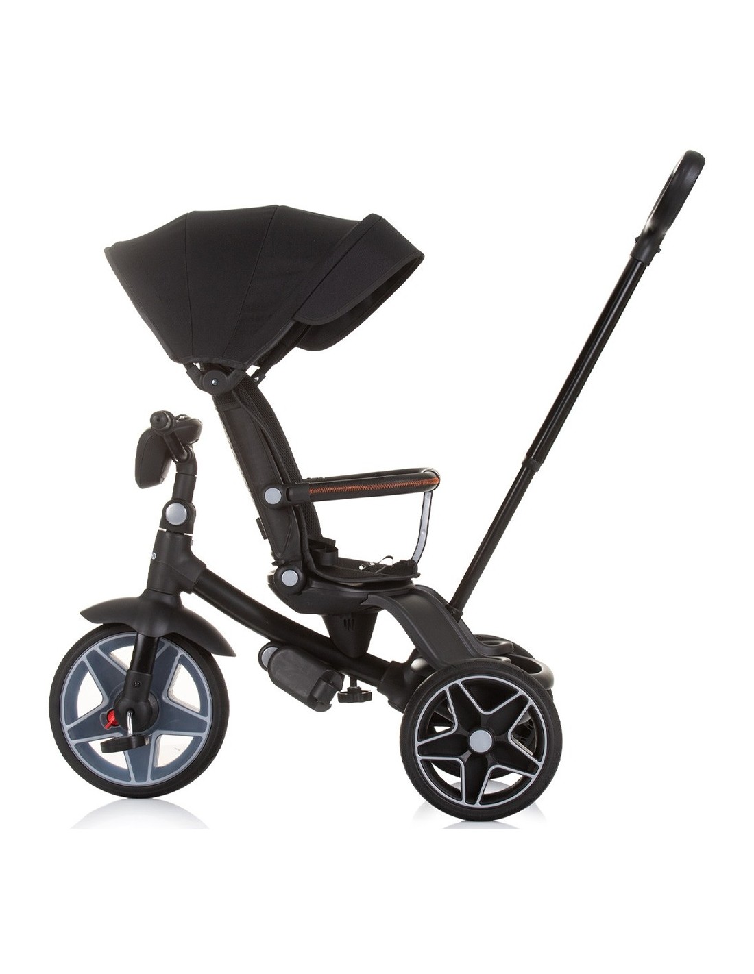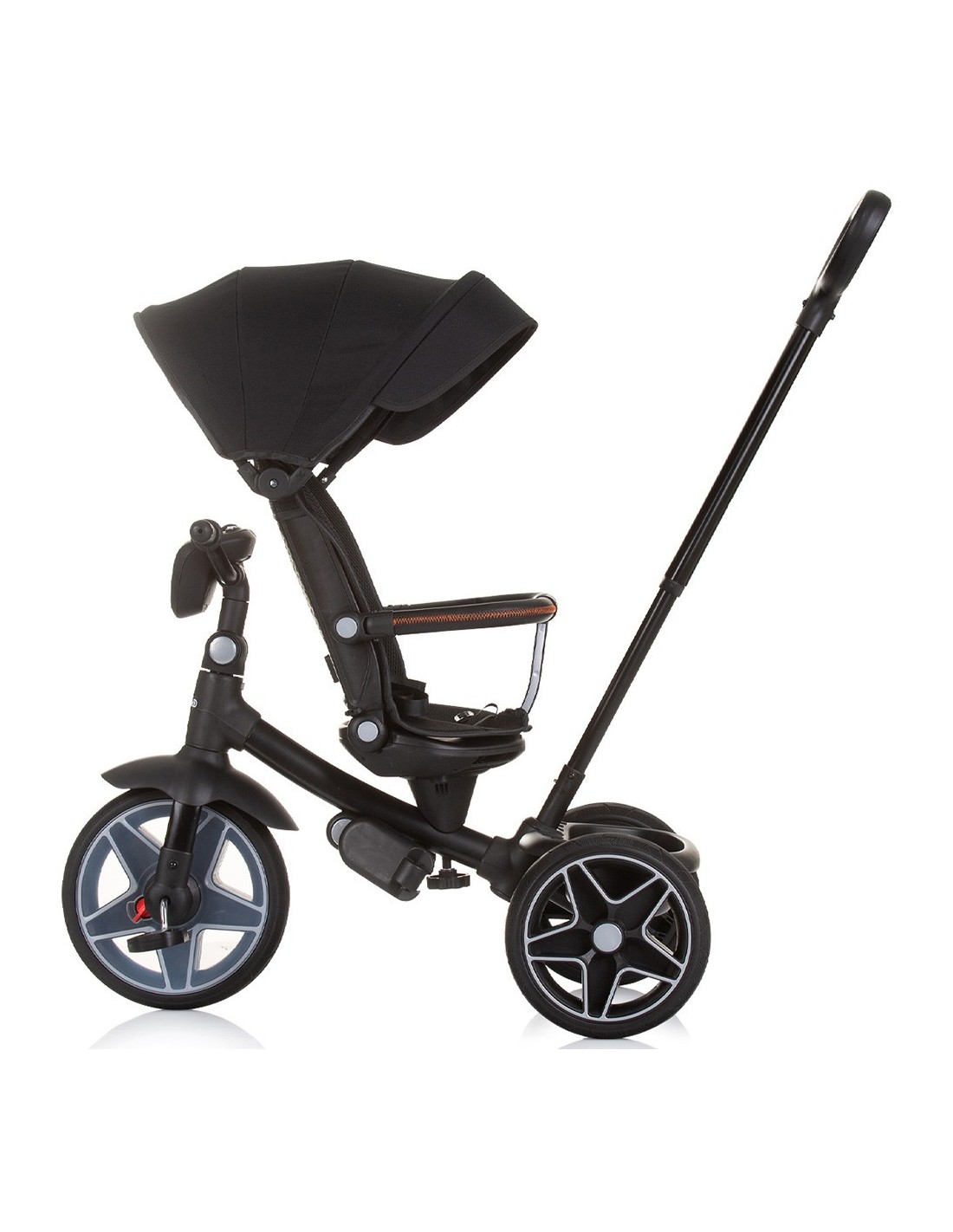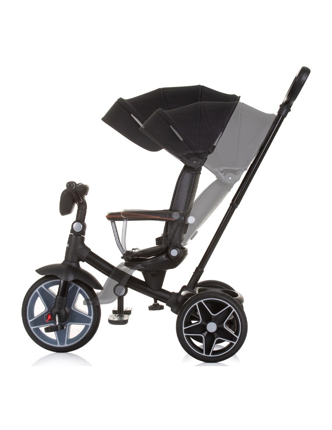 Copertina, manerul de dirijare si bara de protectie sunt detasabile, astfel tricicleta poate fi folosita pentru copii mai inalti