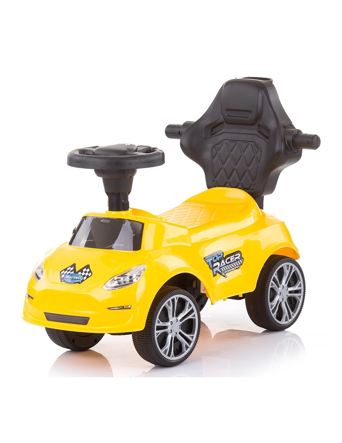 Masinuta se poate pune in miscare de catre copil cu ajutorul picioarelor sau de catre parinte cu ajutorul manerului